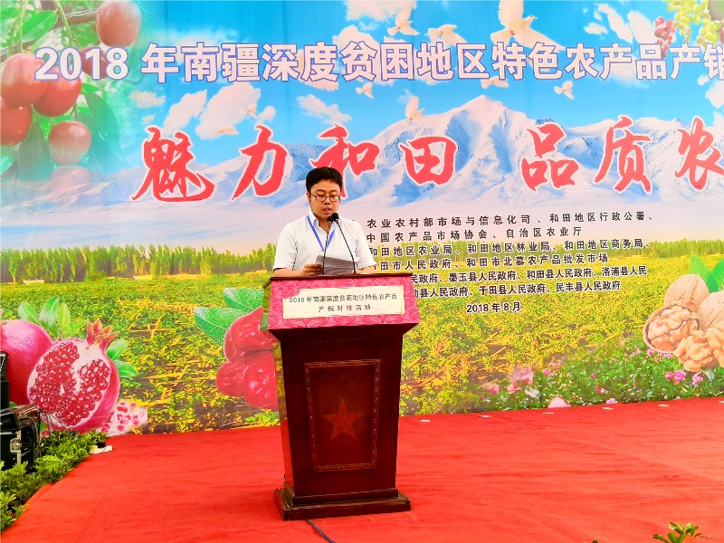 本次活動是2018年全國貧困地區(qū)農(nóng)產(chǎn)品產(chǎn)銷對接行動的第三場活動,以南疆和田地區(qū)、阿克蘇地區(qū)、克孜勒蘇柯爾克孜自治州和喀什地區(qū)等四地州農(nóng)產(chǎn)品產(chǎn)銷對接為重點,重在推動產(chǎn)銷雙方建立長期穩(wěn)定的購銷關系。